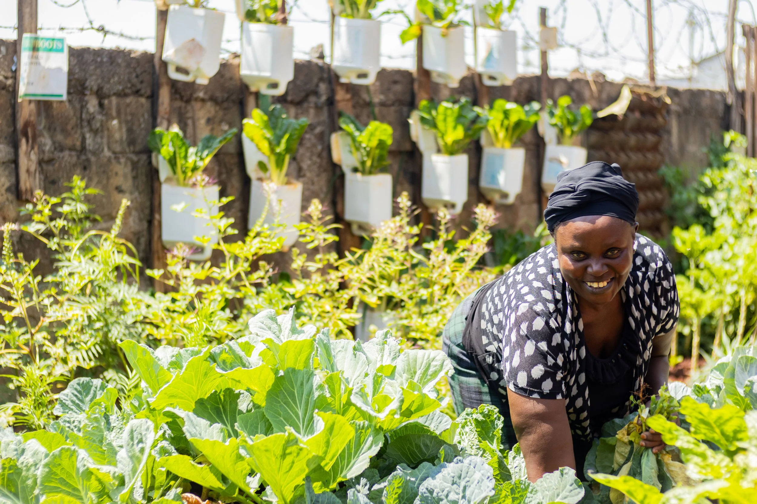 Mama harvesting kales from Ruben Centre’s urban garden.