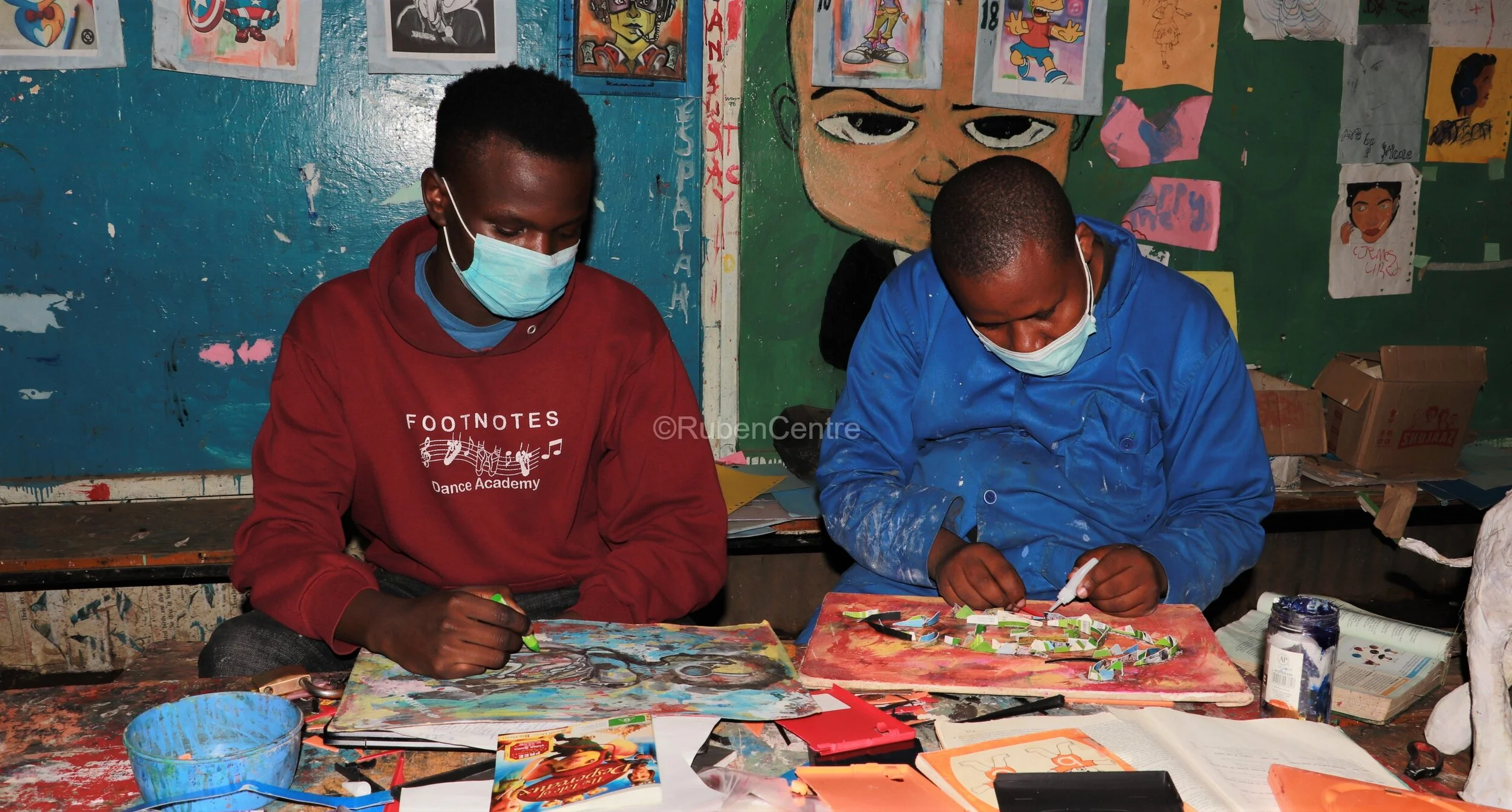 Alphonse Kyalo and Christopher Matuva creating inside the Ruben Centre Art Room. Photo: Stephen Tengo